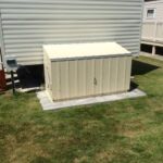 To get the decking we wanted, we needed to move the storage box to the back of the caravan, So patio slabs were laid at the back of the caravan to place the storage box on. After this was completed, the box was moved.
