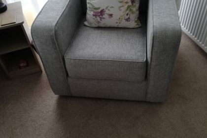 The first of the two bedrooms holds two single beds, these can be changed for one double if required. This is quite a spacious room which I may adapt in future to have dual functions as an office / single bedroom. There is two way switching by the door and bed to switch the main light off or on, with two single points.