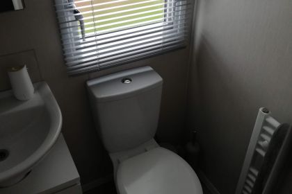 This is just off the master bedroom and holds a toilet and pedestal. It is quite a small room but is more than adequate and fit for purchase. There is no shaver point or storage in this area which is needed in my opinion. This area also holds access to the shower plumbing in the main bathroom. This is used to disconnect the shower for the winter drain down.
